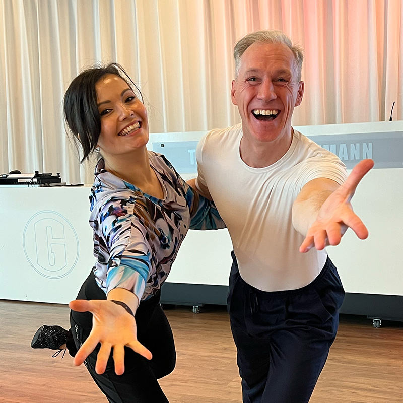 Thomas & Hilde begeistern durch ihre authentische Art, ihren Humor und ihre Fähigkeit, komplexe Bewegungen verständlich zu machen. Ob Einsteiger:in oder Turniersportler:in – bei ihnen steht die Freude am Tanzen stets im Mittelpunkt.